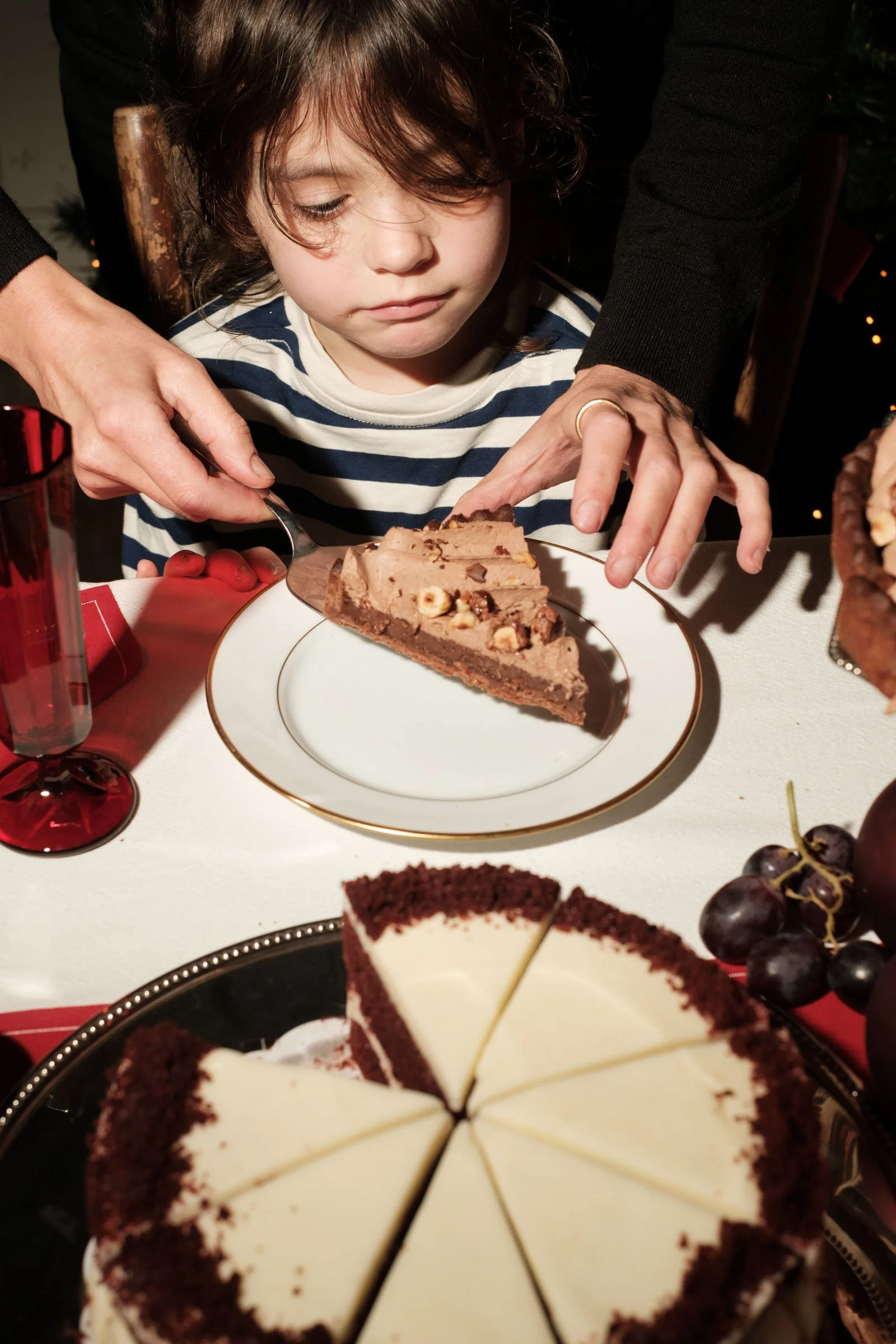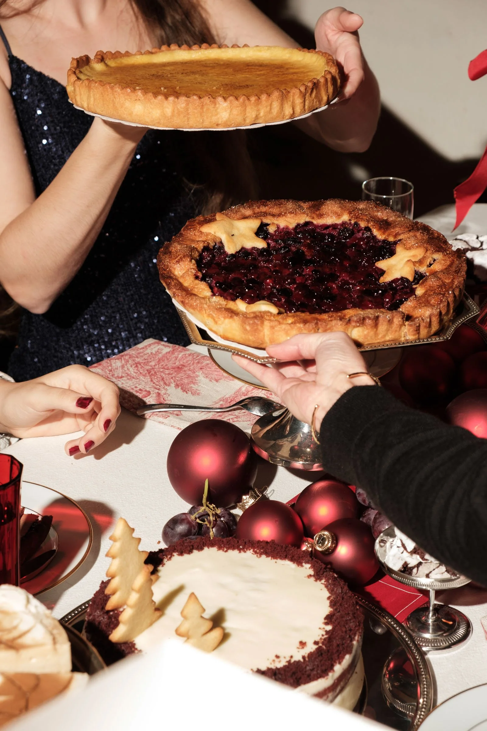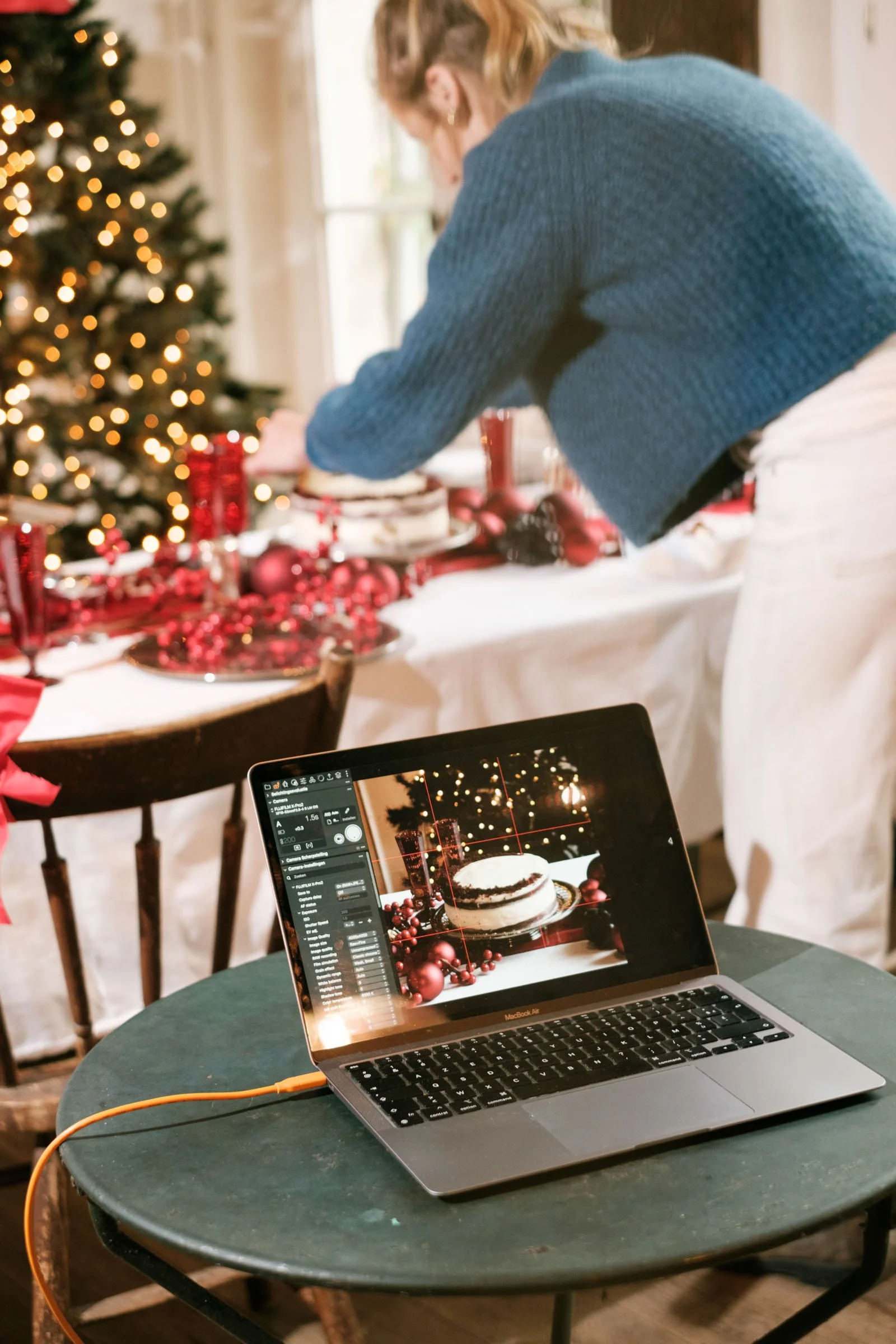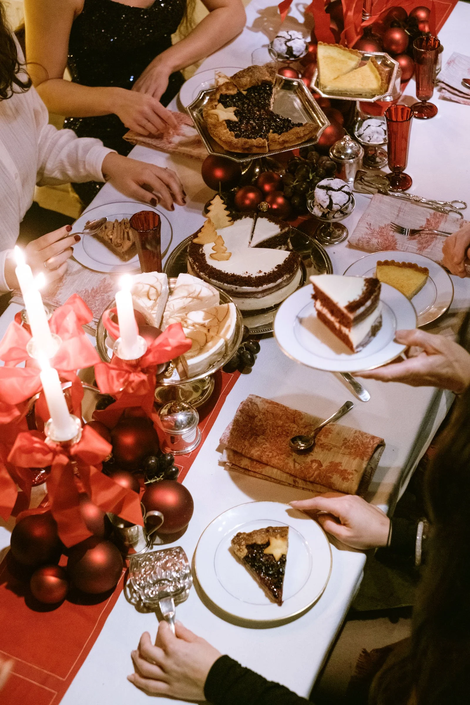 Een taart op een witte achtergrond is informatie; een taart op een feestelijk gedekte tafel, omringd door lachende mensen, is een ervaring. Voor deze shoot in Mechelen brachten we een groep figuranten samen om de essentie van de feestdagen te vangen.